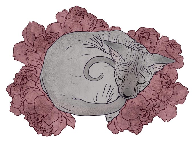#ryltha #cattember #art #drawing #artist #illustration #cat #sphynx #sphynxcat #roses #rose