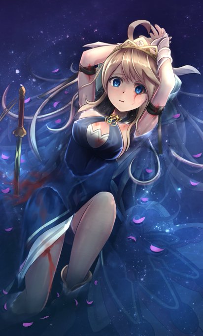 Grace from #DragaliaLost! After reading her story, that's how I imagine her past would look like. A death-seeking character that, otherwise, keeps her teammates alive.