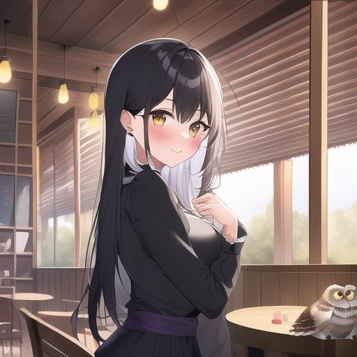 癒やしを求めてふくろうカフェにやって来た少女。遂には自分もふくろうになってしまう 絵は全部AIに描いてもらっています #AIartwork #NovelAI