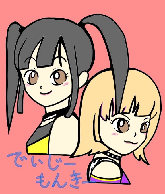 ついにタイトル挑戦のありすず改め、「でいじーもんきー」!! 明日の後楽園ホール大会、セミファイナルが楽しみです!! #tjpw #鈴芽 #遠藤有栖 #でいじーもんきー #週プロフォト自慢 #イラスト #illustration #プロレス