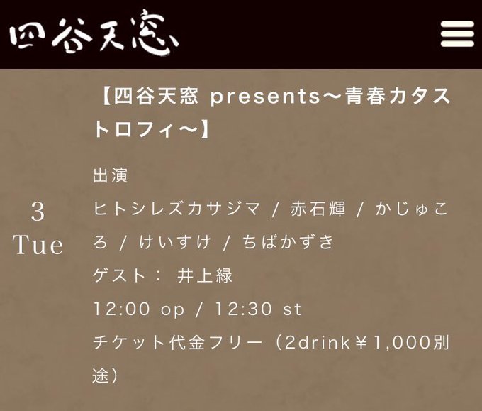【本日5/3(火・祝)四谷天窓 presents 〜青春カタストロフィ〜】