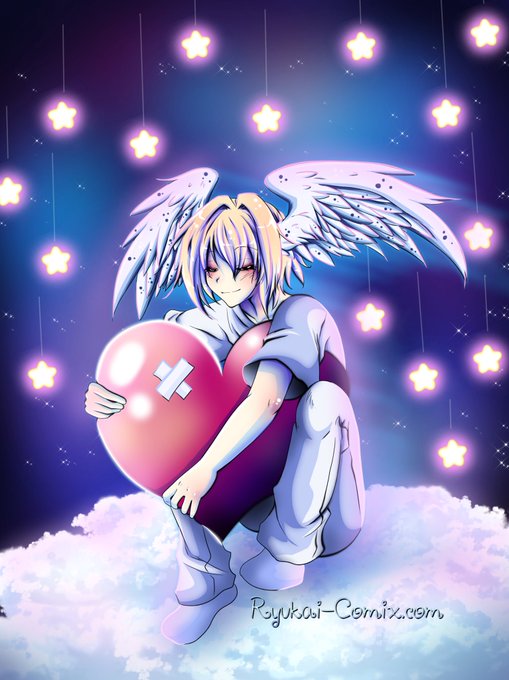 #anime #manga #art #originalartwork #angel #angelwings #stars #heaven #heart #clouds #sky #illustration #art2019 #healing #earwings