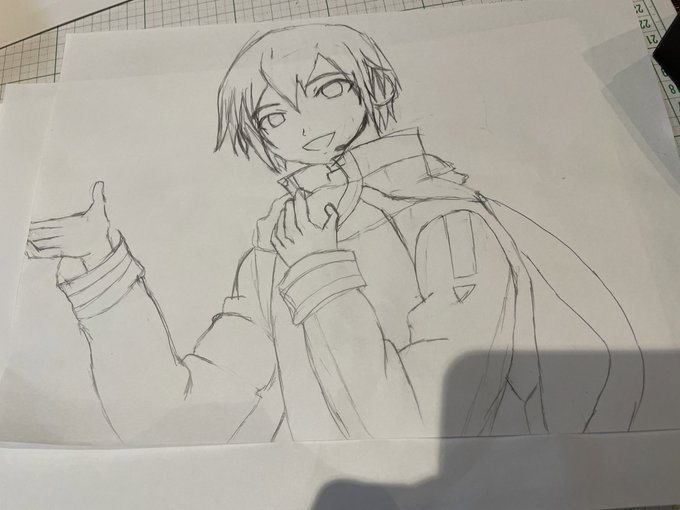 #みんなの推しの初描き絵と最近の絵を見せて欲しい 初描きは模写ですね…… 最近書いたのいいのがなかったのでAnniversaryの絵です