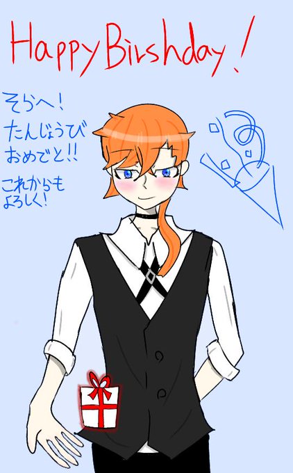 【@Sky_Lucifer_08 】 そらへ! 改めて誕生日おめでとう!!0時は寝過ごしたけど前から描いていた絵をプレゼント!!頑張ったから受け取って!!