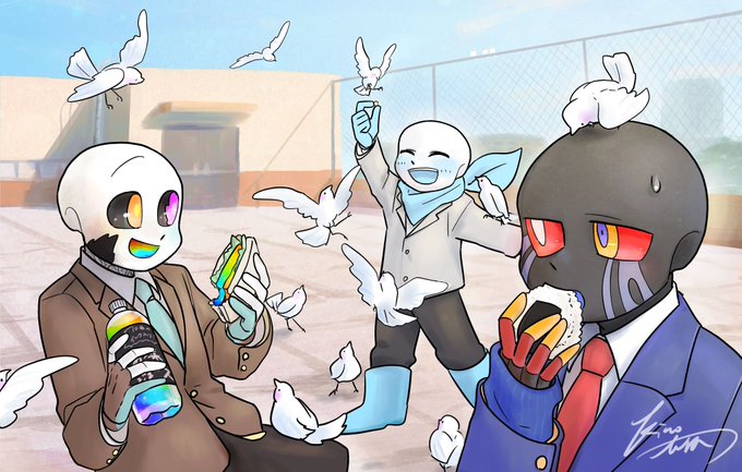 こちらがその元となったイラストです////劉焔の書いた小説「子犬になったラストと高校生エラーの恋物語」通称「子犬物語」から、『学校の屋上でお弁当を広げるエラー、インク、ブルーベリー』を描いて頂きました!