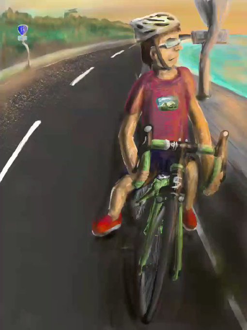 【制作工程編】 海沿いサイクリング #お絵描き #illustration #イラスト #イラスト好きさんと繋がりたい #絵柄が好みって人にフォローされたい #絵描きさんと繋がりたい #ibisPaintX #アイビスペイント #サイクリング #自転車 #海 #ロードバイク #ツーリング