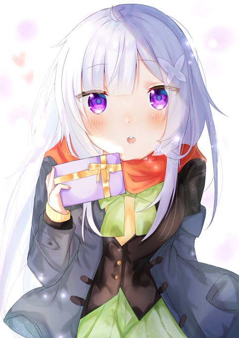 #イラスト #rizero #エミリア #バレンタイン 「すこーし早いけど…はい!チョコを渡す日でしょ?💕」