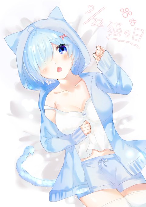 #イラスト #rizero #レム #猫の日 猫の日近いので猫耳パーカーレム〜🐱💙
