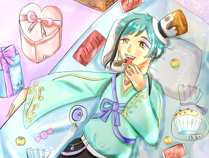 ツイステのフロイド書描いてみました。テーマはバレンタインで、他の神絵師様には劣るけど、これからも上達できるように頑張っていきます。 #ツイステ #ツイステファンアート #フロイド