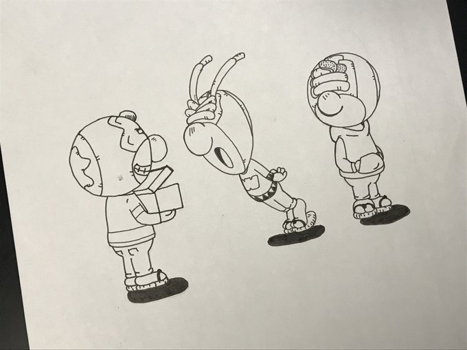 「猫と童」 こんなにマジマジと猫を描くのは初めて。 猫はGペン、童は紙用マッキーでペン入れ。 さてこの童達は何のスニーカーをベースに描いているでしょうか?笑 分かる人にはすぐ分かるかなー。 最近はこんな童達のソフビを作りたいなぁという欲に駆られてますw
