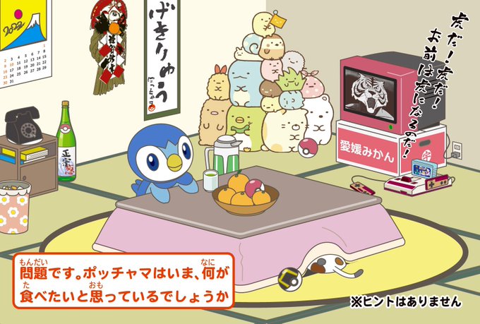 新年あけましておめでとうございます。今年もゆるく参りますので宜しくお願い致します。 今年の年賀状はナゾナゾ仕立て。ポッチャマとすみっコぐらしを入れたのは姪っ子のリクエストに沿いました。積極的にヒントはあげませんけどヒントあり。答えは至極簡単