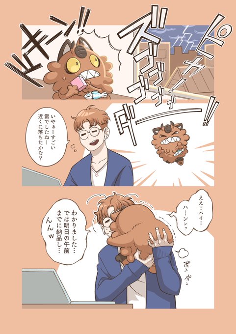 にゃん吉とヨワシ(2/2) おしまい #ポケモンのいる生活 #ガラルニャース #ヨワシ