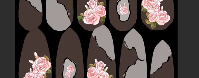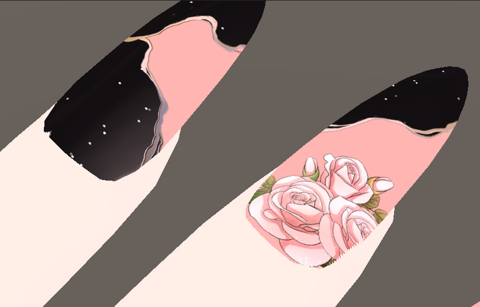なんか寝れないから薔薇ネイルこねこねしてた 黒い線の所はMatcapで任意のメタリックカラーに出来るようにMask作る
