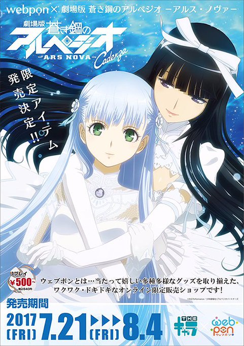 オンライングッズ販売サイト『webpon(ウェブポン)』にて本日19時から「蒼き鋼のアルペジオ ‐アルス・ノヴァ‐ 」限定アイテムが販売予定!A賞~E賞まで盛り沢山です!1回¥500でチャレンジ出来ます♪ #サンジゲン #アルペジオ