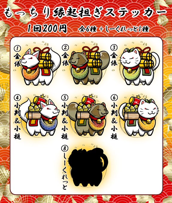 明日からふたばねこさんにて開催される『#収幸祭3』では、新作『幸来狐(大金俵)』『幸来狸(大金俵)』と、2種のステッカーガチャを用意しました。新しい幸来狸の顔はスーパー気に入ってます。