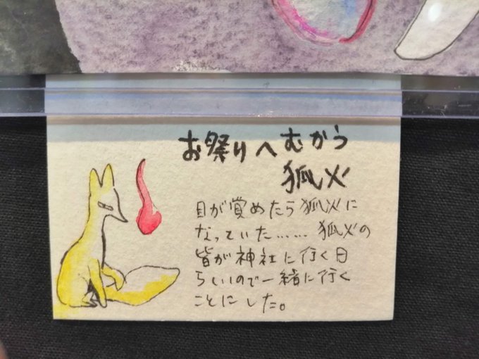 とても可愛らしいこぎつね兄弟の作品たち!メインイラストは、提灯やお星さまが沢山浮かぶ幻想的で可愛らしいイラスト。原画は売約済みですが、ポストカードにてお迎え可能です。他、ブローチやキーホルダー等身近で使える作品がございます!