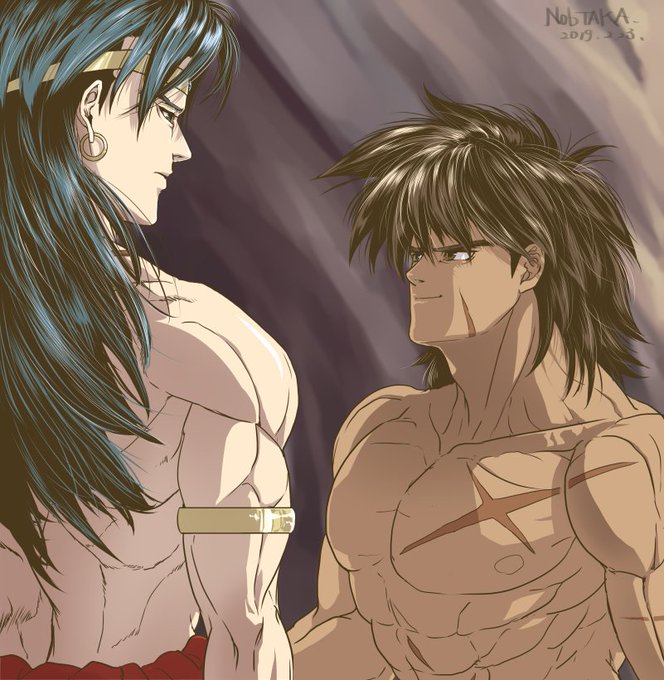 【友人絵】「自分絵で練習ブロとブロ。超ちゃんが妙に懐いてる絵になったので『待ってたぞ』でも『もう帰るのか?』でも言ってて欲しい幻覚」またまた頂きましたァン!!髪の毛サラッサラ…この友人の描く髪の毛のサラリー具合まじでスキルほすい…いい表情だと褒めてやりたいところだァ…!\わん/