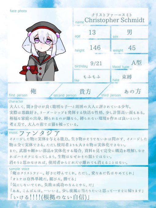 団員名簿⑱[@aoki_blueberry ]宅 クリストファー・スミト︎︎☁︎︎ファンタジア