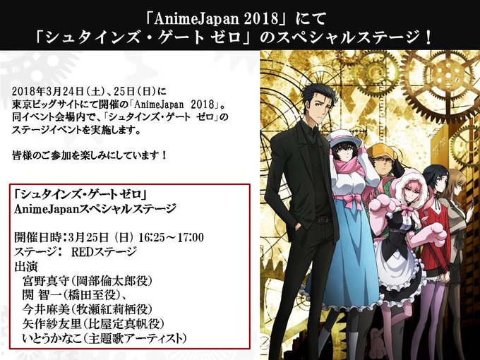 【 #animejapan 】そして!本日16:25 〜REDステージにてスペシャルステージを実施します!チケット当選された方は発券をどうぞお忘れなく!またチケットを持っていらっしゃらない方もご覧いただけますのでAJの最後にはぜひシュタゲステージにていらしてください! #シュタゲ