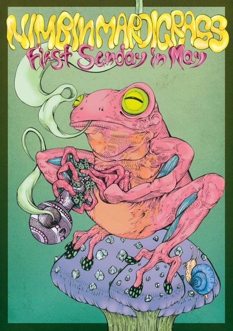 【予約特典】5月13日(金)23時30分までにTシャツを予約すると、Nimbin Mardigrass 2016のポスターデザインのステッカーを1枚付けます。さらに、抽選で15名様にキメスギくんステッカーも1枚付けますよー!