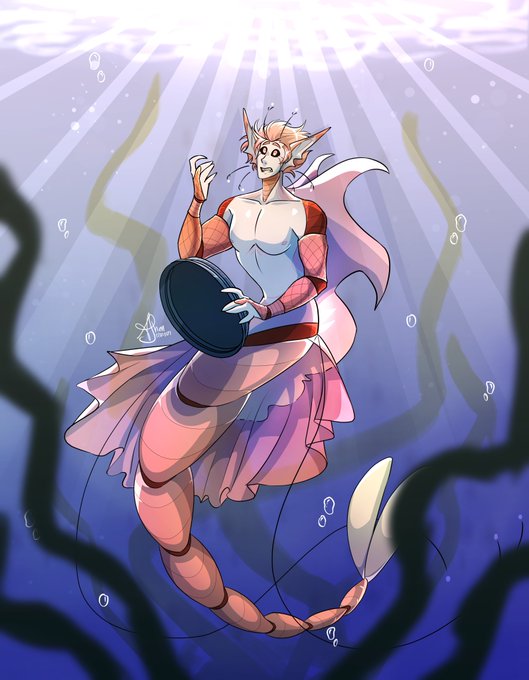ever since i saw @seaboundsailor_ 's chara leviathan i've been itchin to doodle him because of how pretty his design is, so take this quick colored sketch i did so that i can Focus on the things i actually gotta do HAHAH, i hope i didn't miss any details :D