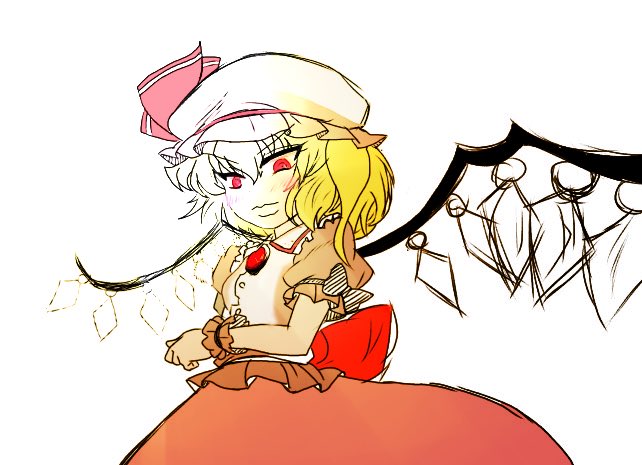 @izayoi_flan リクエスト:おぜう服のフランちゃん フラン「こんなにも月が紅いから、楽しい夜になりそうね…フフww」 レミ「恥ずかしいから言わないで」