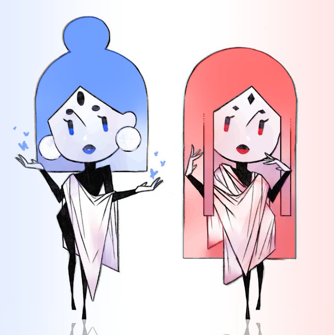 Decided to redraw these girls from previous drawings but as chibis and I love them more now (+ i used auto colourisation of csp and it's so great i love it) 💙❤️