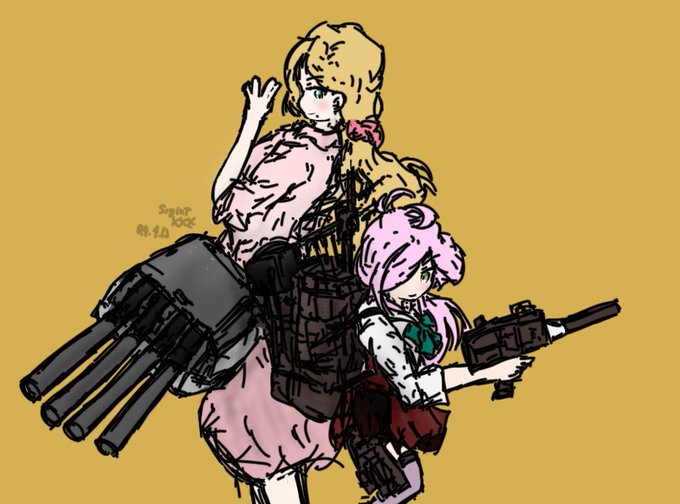 #艦これ版深夜の真剣お絵描き60分一本勝負 #艦これ版真剣お絵描き60分一本勝負_20220203 #艦これ 摩耶様&松さん 黒グローブ姉妹!