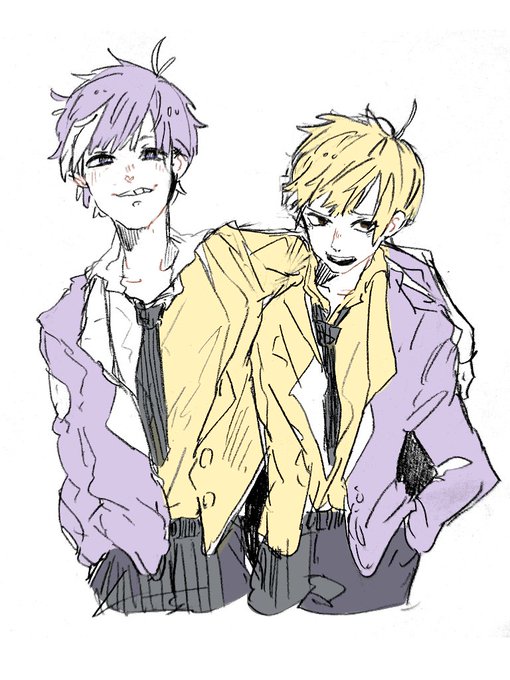 なんだか18歳の六つ子が面白そうで描いてしまいました🙏 めっちゃイメージ変わった数字松です💜💛 一松と十四松〜!