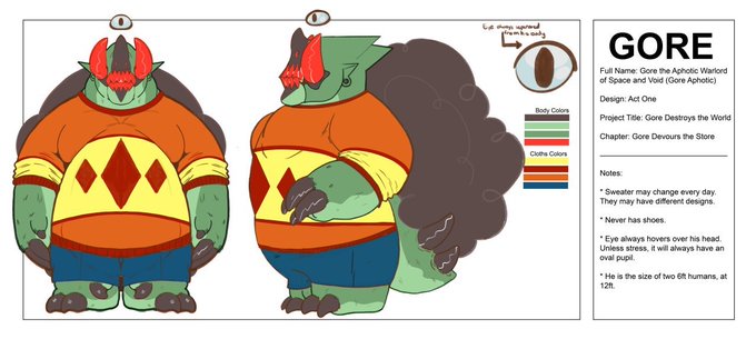 I have an idea for an cartoon... GORE RULES THE WORLD would be a really good cartoon, and would be rather monster of the week, action based cartoon with mellow slice of life in-between the action in which we watch Gore, an eldritch god, try to live his best life. #bettercartoon https://t.co/reWRbO7EOT