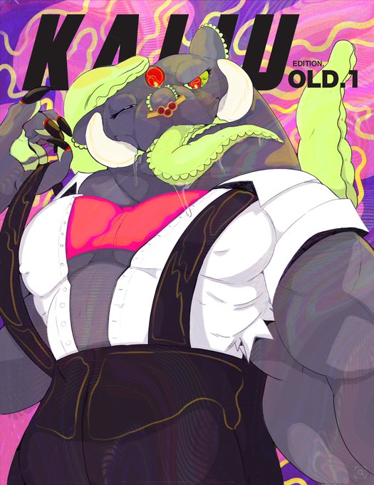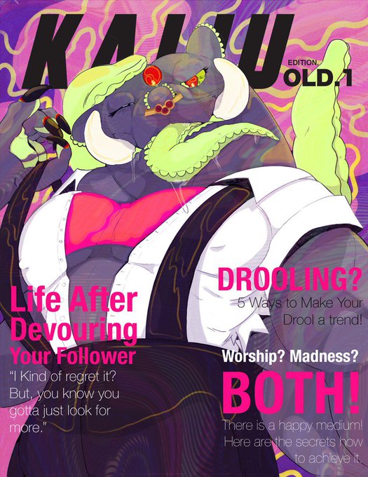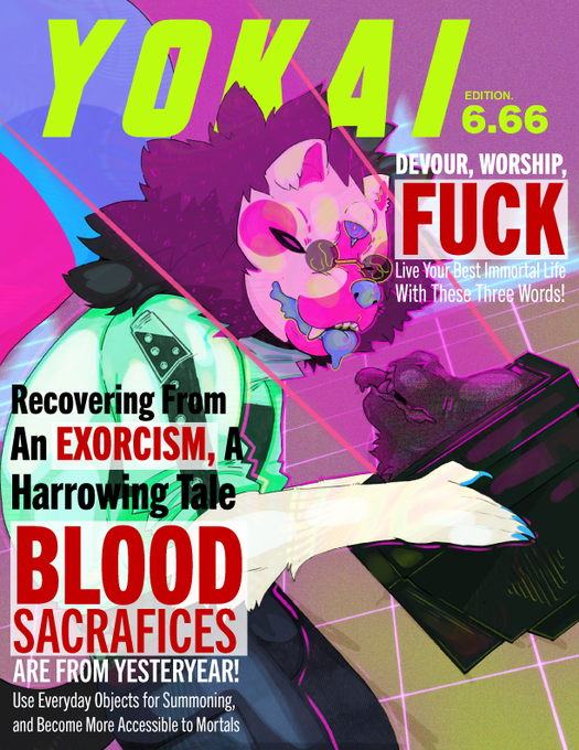 This is the Seijin edition magazine featuring my evil boy Villain, now renamed to Vile. He has a really fun story I want to tell and there are some hints to it in the headlines. This character has definite Shonen anime villain vibes, hence his old name. #Furry