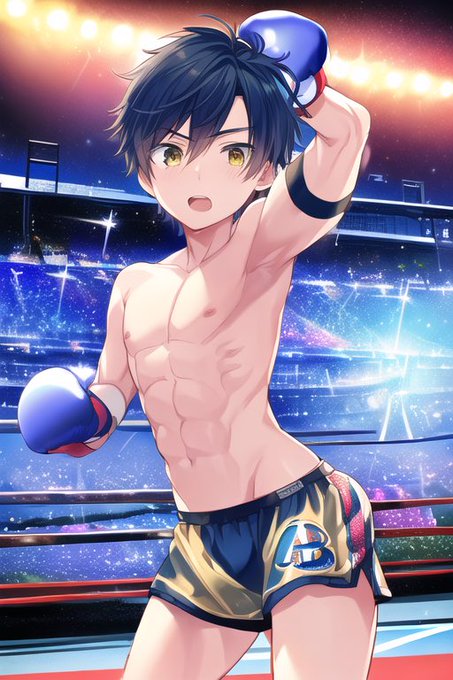 はい、日曜日の夜の少年ボクサー画像アップです。 明日は月曜日、また一週間頑張って乗り切りましょうねー #少年ボクサー #NovelAI #NovelAIdiffusion