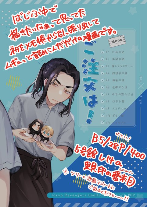 【新刊サンプル】ご注文は!【ばじふゆ】 Tokyo罹破維武4 5号館し14aにて頒布予定!色んなばじふゆ詰め込みました☺️ B5/28p/400 部数アンケートにご協力ください🙇♀️ https://t.co/lPVZMAtsq6 (サンプル1/3)