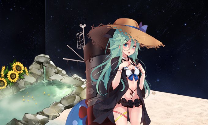 夜の浜辺の露天風呂で水着撮影会(綾波型編(実質七駆編