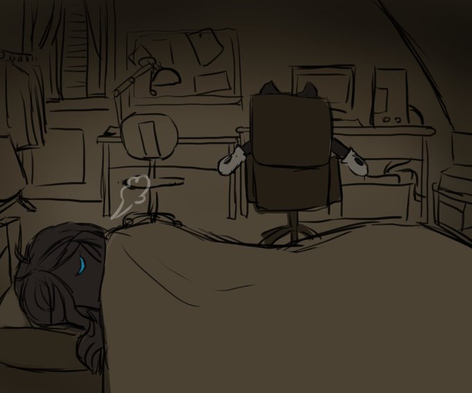 I realized he was staring at me during the night while I was sleeping😂(because I forgot to turn the chair so that he looks at the computer instead of looking at me)