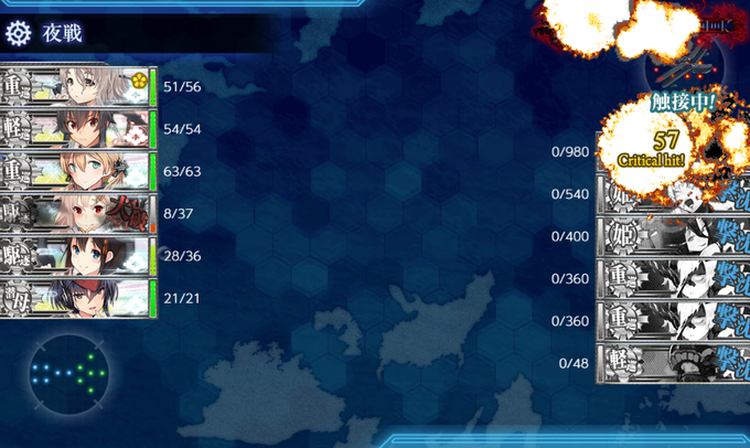 6-2 伊勢改二採用して道中2戦ルート大破撤退することなくスムーズに抜けれました♪しかし、白露と時雨ちゃん任務するのにもうちょいかかる^^;