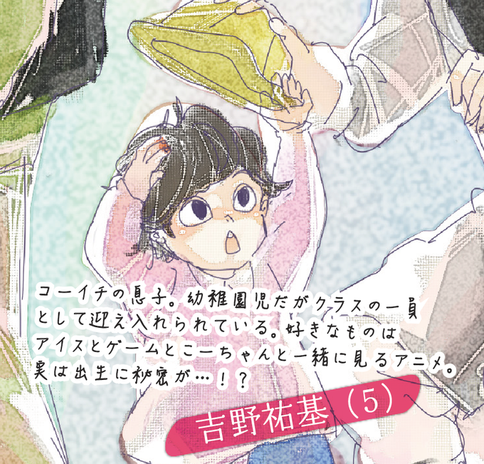 【超特急学園人物紹介③】吉野祐基(5歳) 晃一の息子。幼稚園児だがクラスの一員として迎え入れられている。好きなものはアイスとゲームとこーちゃんと一緒に見るアニメ。実は出生に秘密が…!? (http://t.co/ZpIIIQXRql)