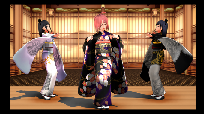 和服でもやっぱりよく回転する烏龍さん達