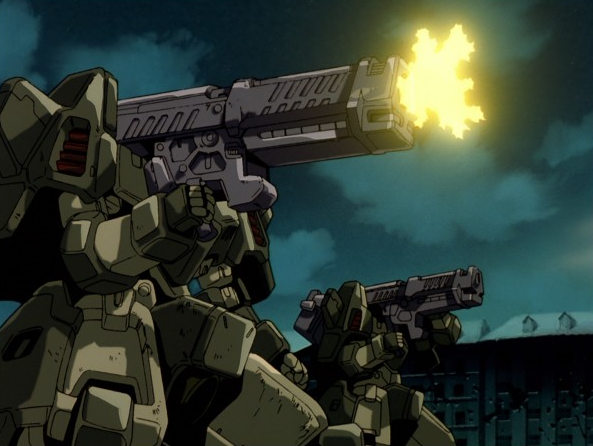 そして、こちらがシェンロンガンダムの頭部バルカン連射シーン。ドラゴンハングファイヤーを除くと射撃兵装のないシェンロンガンダムですが、攻撃用というより牽制や対空防御に用いられた模様です。