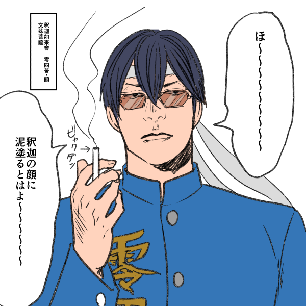 ホ~ショ~様がヤンキーだったら裏番はってるやつだね。(吸ってるのはビャクダンだし、背景のモブは修行僧なので問題がないイラスト)