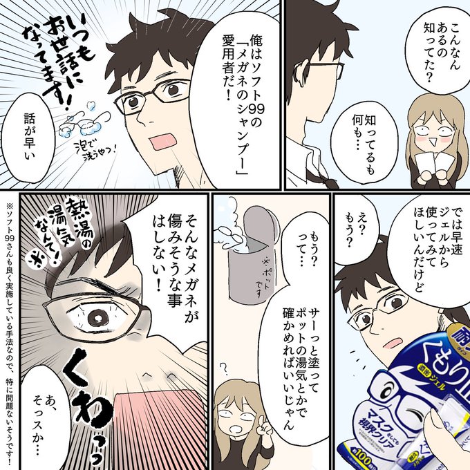 あすは #漫画の日 らしいです。以前にソフト99の「メガネのくもり止め」を題材にして、クスッと笑える漫画を描いていただきましたので、よかったら読んでみてください!
