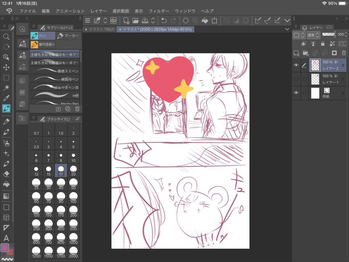 1枚30分(きんだいち1話ぶん) さて企画の線画にうつります~!!!!