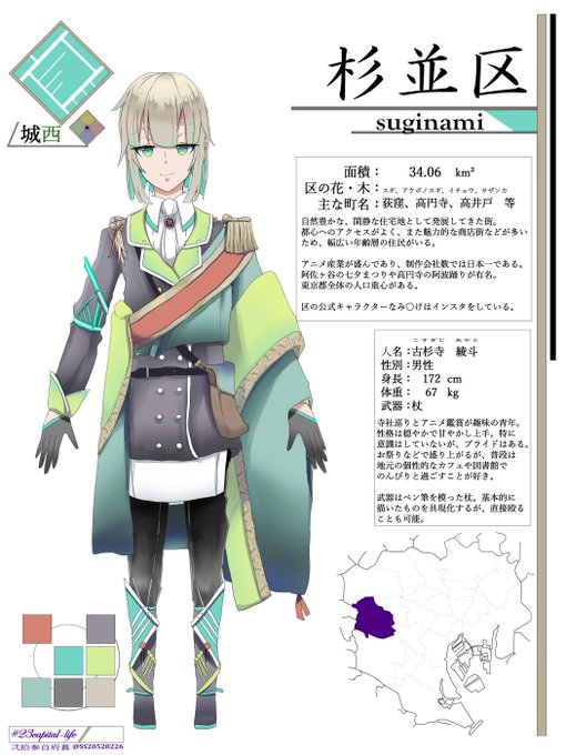 土地擬人化の沼に突っ込んだ塩砂糖です。 #弐拾参首府暮 というタイトルでのんびりと他の子たちも描く予定です。タイトルはそのままの意味です。 まずは城西地区の古杉寺くんから。