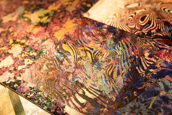 キャンバスに箔+UV印刷