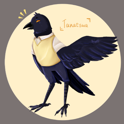 i forgot to post but this is officially my feathersona! he's named tanatswa and he's an african raven c: all arts are not mine and was made by peeps from artfight that I attacked and one from a friend! he a gud furry birb boye