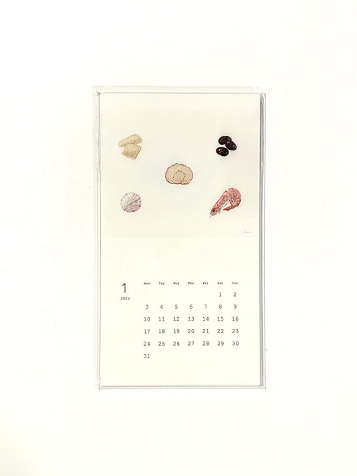 吉祥寺GALLERY IRO @gallery_iro さんの新スペースで開催中のカレンダー展へ。2022年はヤマナカハルナさんのカレンダーにしました。ふわりと清らかで美しい食べ物モチーフ。(キッチンに飾る用なので毎年食べ物モチーフ選びがち)