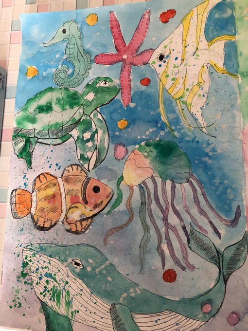 #水彩画 #海の中