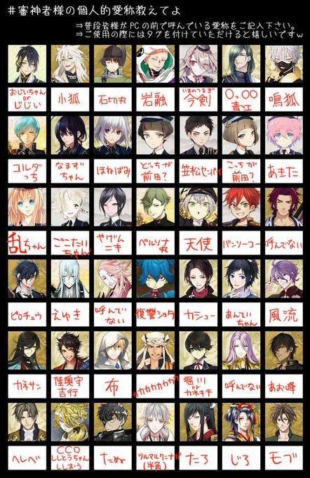 #審神者様の個人的愛称教えてよ わたしもやった~おもしろみはない