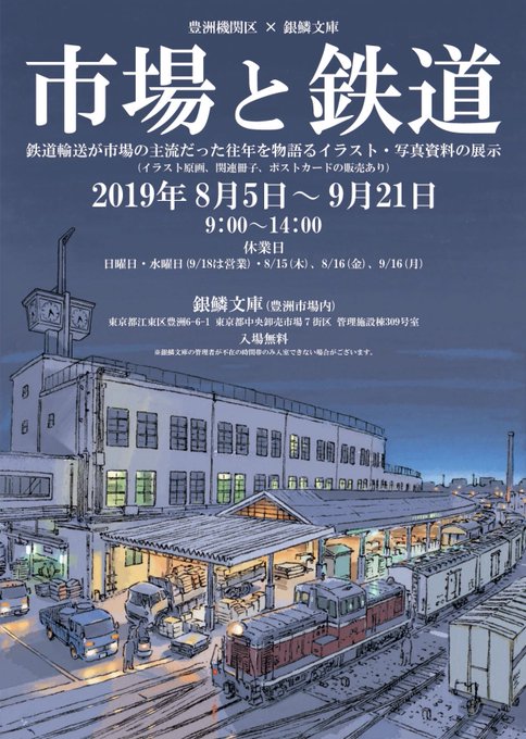 明日21日(土)は銀鱗文庫の「市場と鉄道」最終日です。9:00〜14:00まで私も在廊して皆様をお待ちしております。豊洲市場で朝、昼ご飯のついでにでも是非お立ち寄りください!