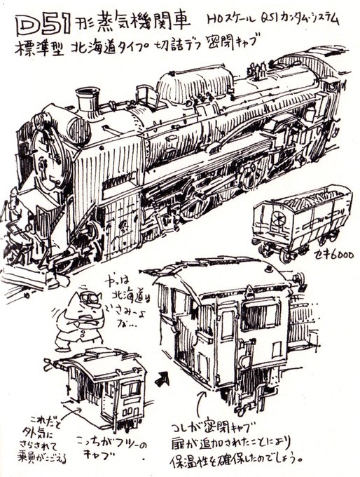 描いている漫画に登場する内燃機関車。加藤ロコの図鑑を見ながら当時のガソリン機関車を少し軍事仕様っぽくしてみた。